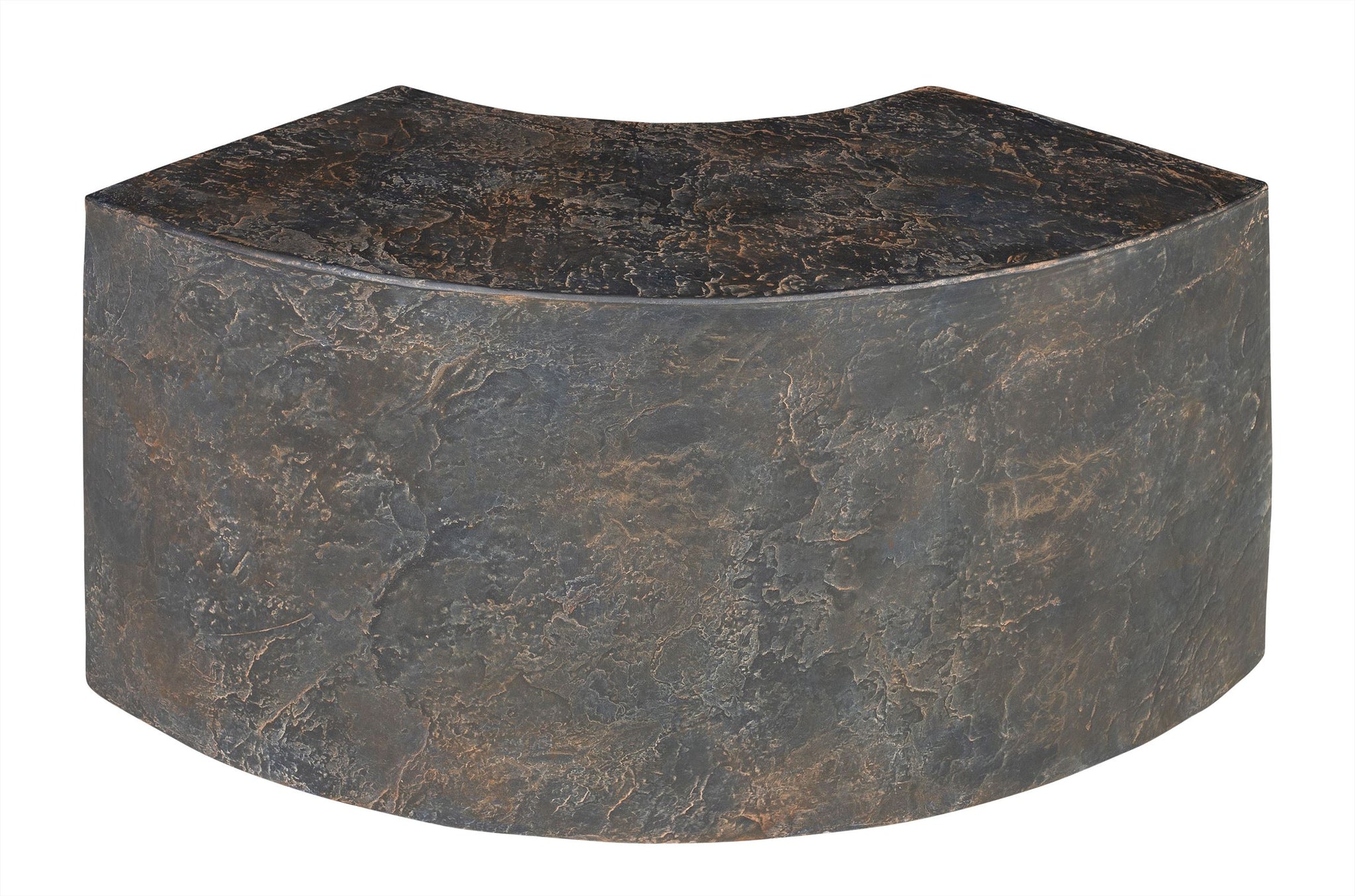 De afgeronde vorm maakt dit element veelzijdig in gebruik als bijzettafel, salontafel of als onderdeel van een modulair geheel. Het karaktervolle oppervlak met subtiele kleurnuances weerspiegelt de uitstraling van natuurlijk gesteente, terwijl het duurzame materiaal zorgt voor stabiliteit en een lange levensduur.