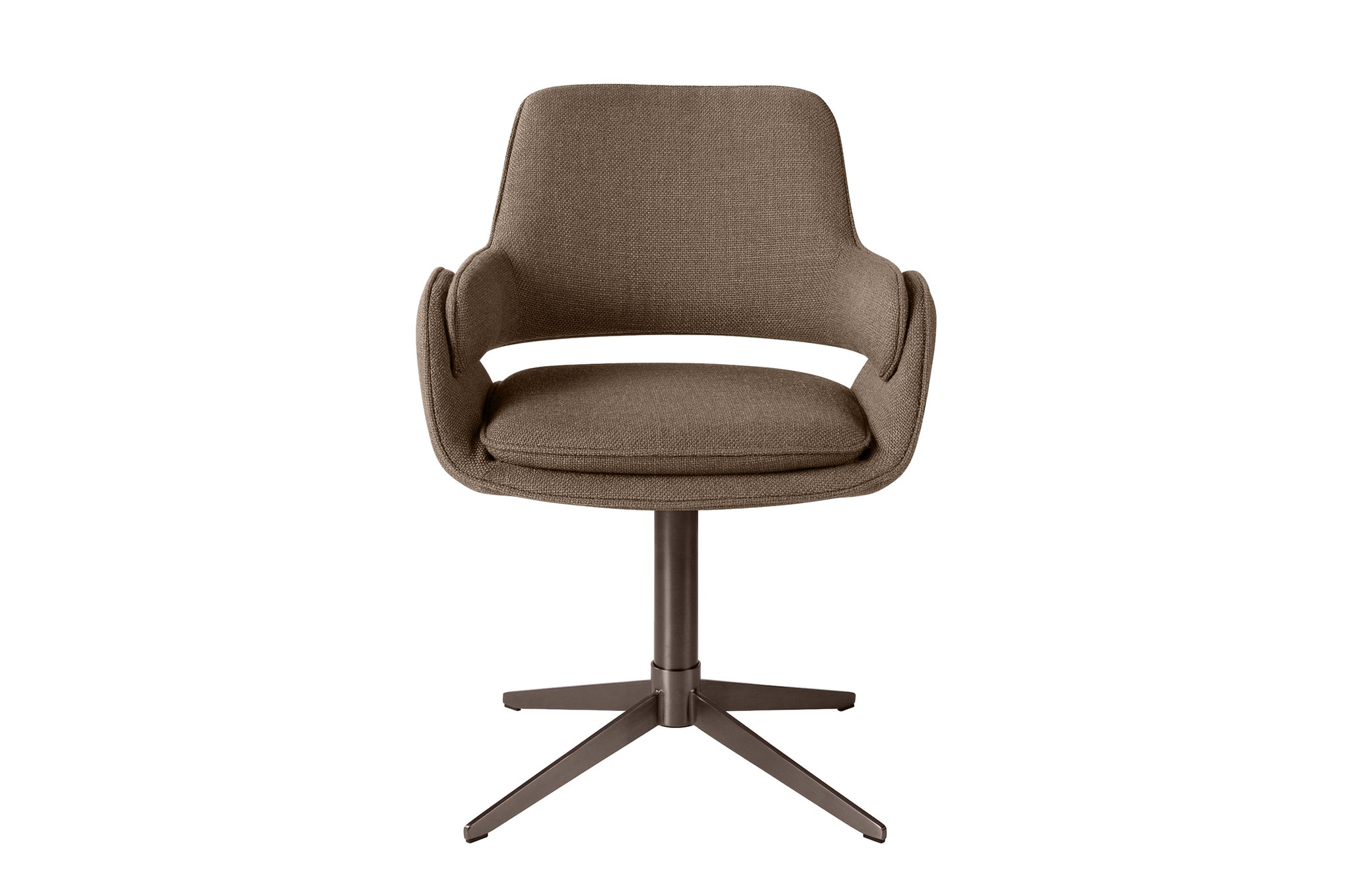 Het onderstel in geborsteld brons voegt een verfijnde, moderne glans toe aan het ontwerp. De combinatie van warme stoffering en elegant metaal maakt Harvey tot een veelzijdige stoel die moeiteloos past in zowel moderne als klassieke interieurs.