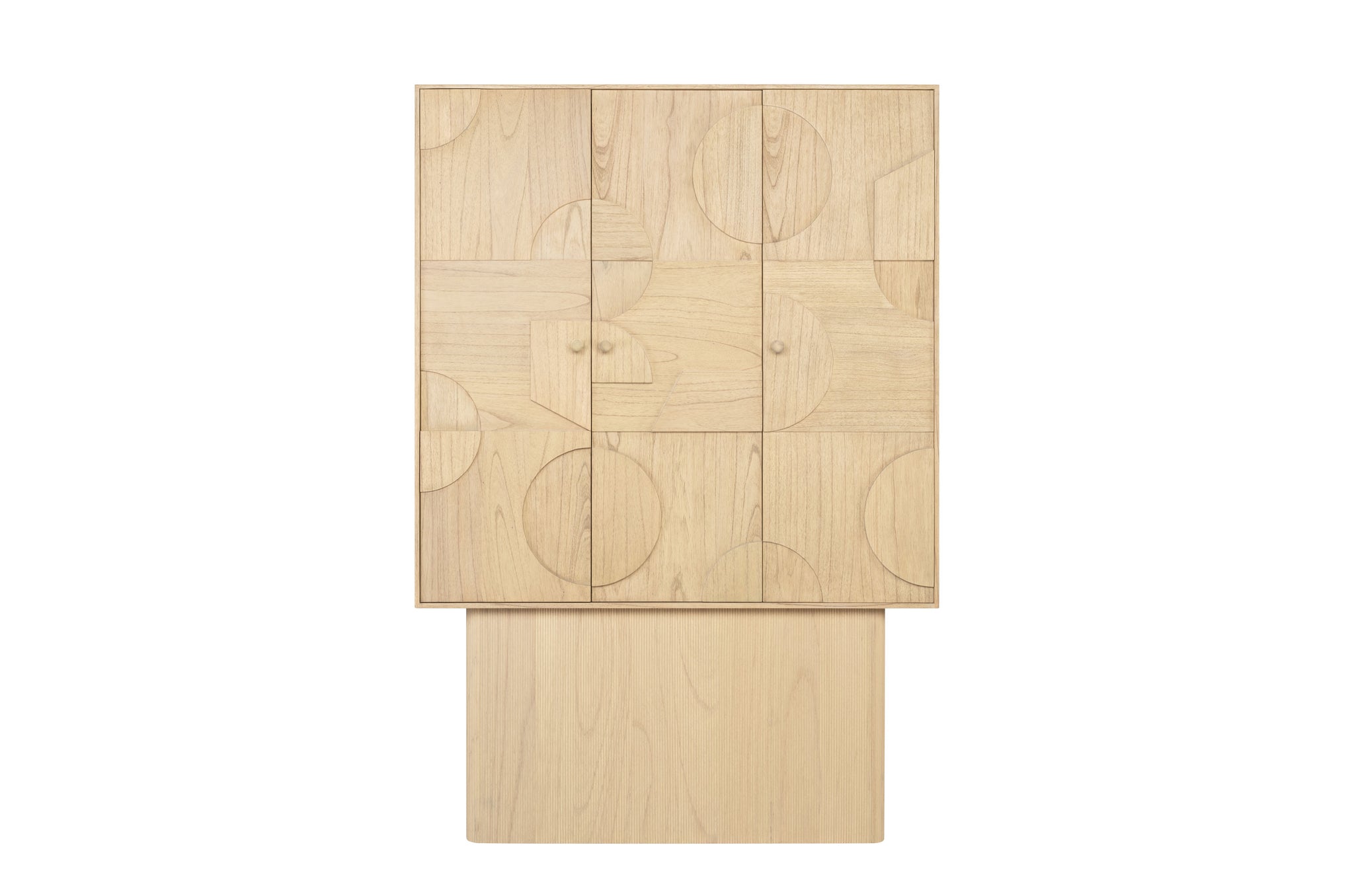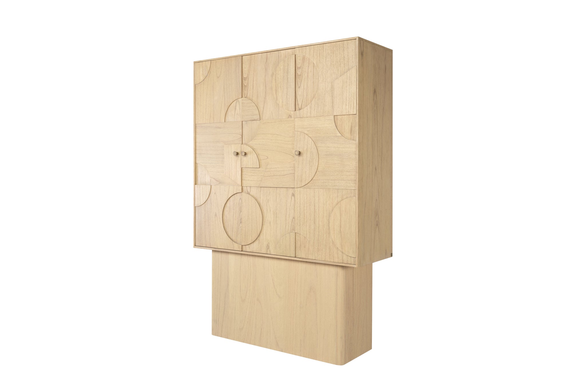 De opbergkast Zulgo van Versmissen brengt warme natuurlijke tinten samen met een modern lijnenspel. Vervaardigd uit mindihout met een natuurlijke afwerking, waardoor de houtnerf prachtig zichtbaar blijft. De subtiele cirkelvormige reliëfs geven het ontwerp een eigentijdse uitstraling met een ambachtelijke toets.