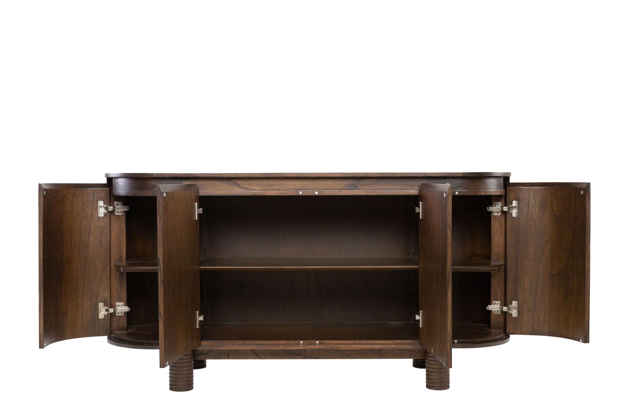Het Dressoir Mezze van Versmissen verenigt zachte rondingen met verfijnde detaillering. Vervaardigd uit mindihout in de warme tint Roasted Coffee, toont dit meubel een harmonieuze balans tussen vorm en materiaal. De verticale structuur van de poten en het afgeronde silhouet geven het ontwerp karakter en rust.