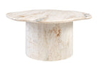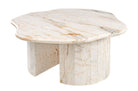 Salontafel Atol is gemaakt van Golden Calcutta marmer, een steensoort die bekendstaat om zijn warme aders en zachte kleurschakeringen. De afgeronde, golvende vorm geeft het geheel een elegante lichtheid, terwijl de poten dezelfde marmeren structuur doorzetten voor één rustig, sculpturaal geheel.