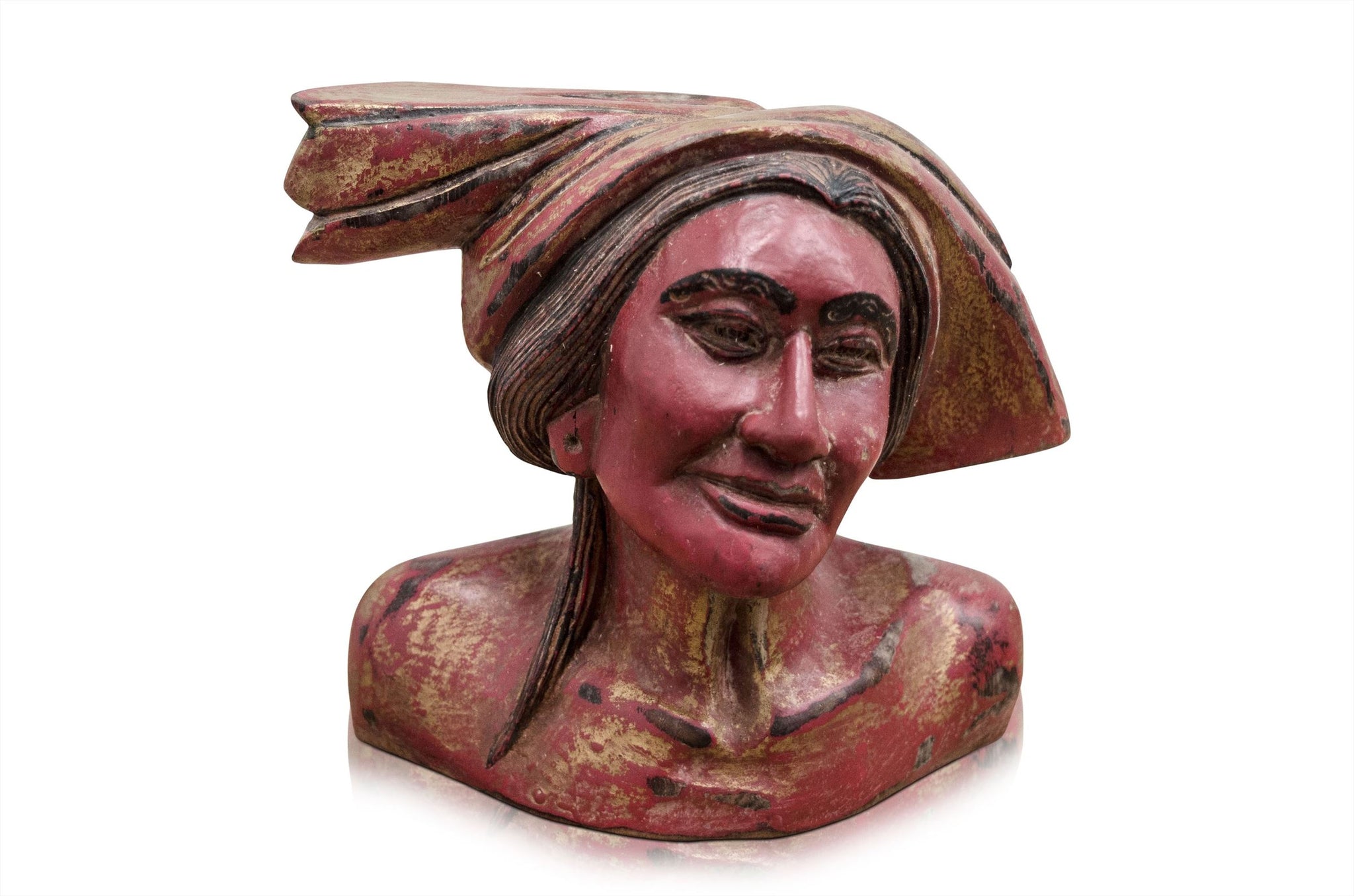 Deze handgemaakte houten beelden van Vermissen, afkomstig uit Indonesië, hebben een warme en authentieke uitstraling. De expressieve gezichten, subtiele slijtagesporen en diepe roodtinten geven elk beeld een eigen karakter. Handbeschilderde details brengen de traditionele vormentaal tot leven, terwijl de verouderde afwerking zorgt voor een doorleefde, tijdloze charme.