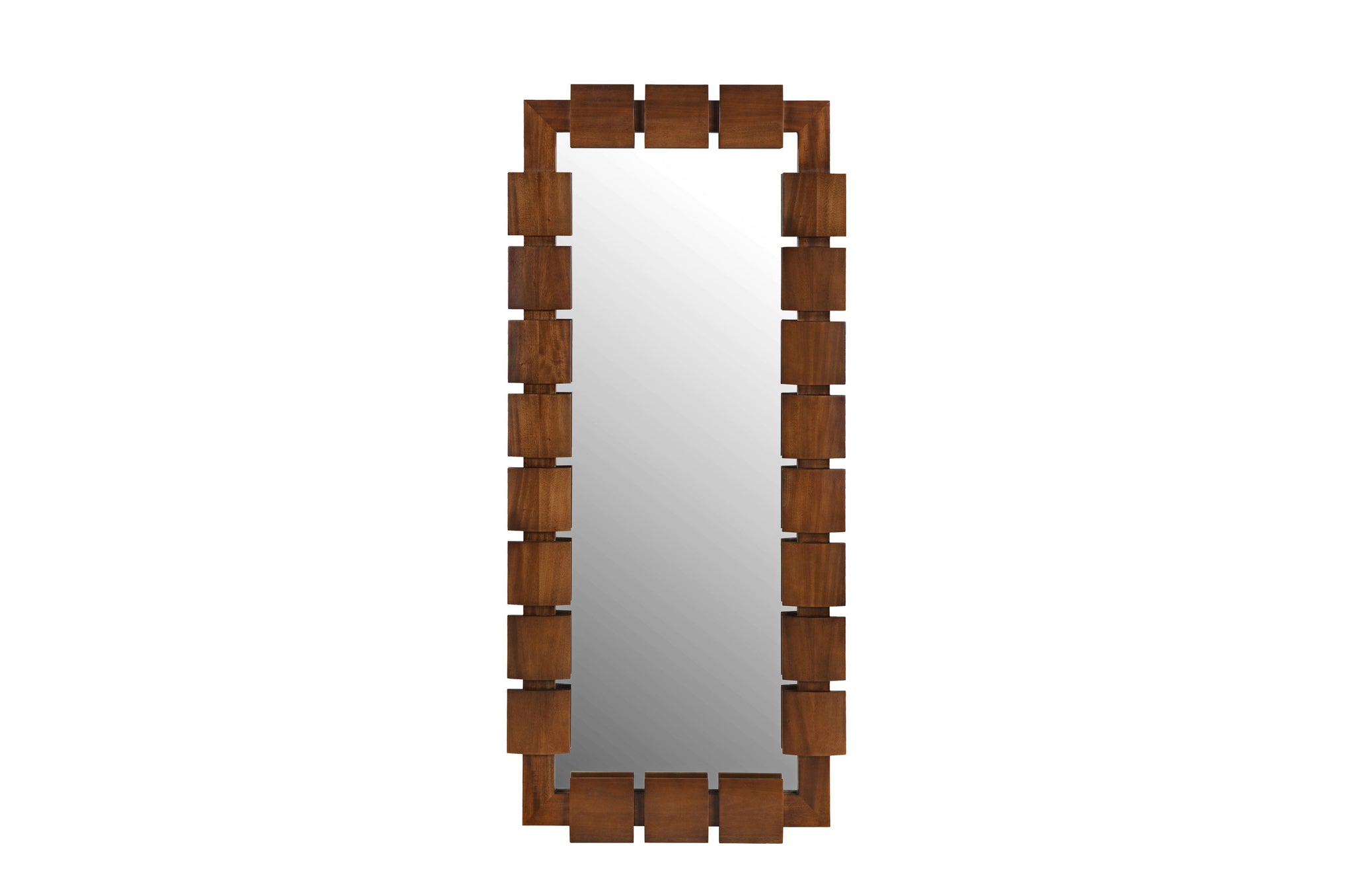 Spiegel Raba – Large maakt direct indruk met zijn royale formaat en het kenmerkende blokframe van mahoniehout. De Light Roasted Coffee-finish geeft het hout een warme, verfijnde gloed, terwijl de sculpturale opbouw van het frame zorgt voor een krachtig, bijna architectonisch effect.