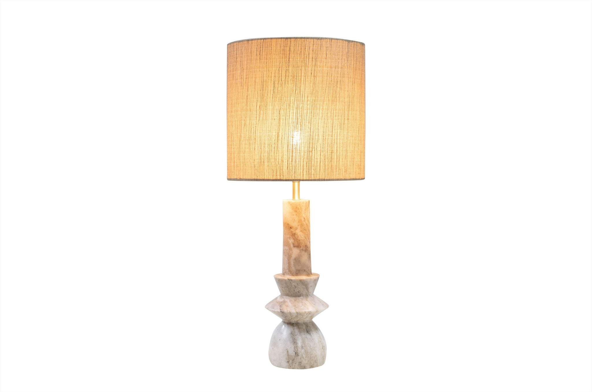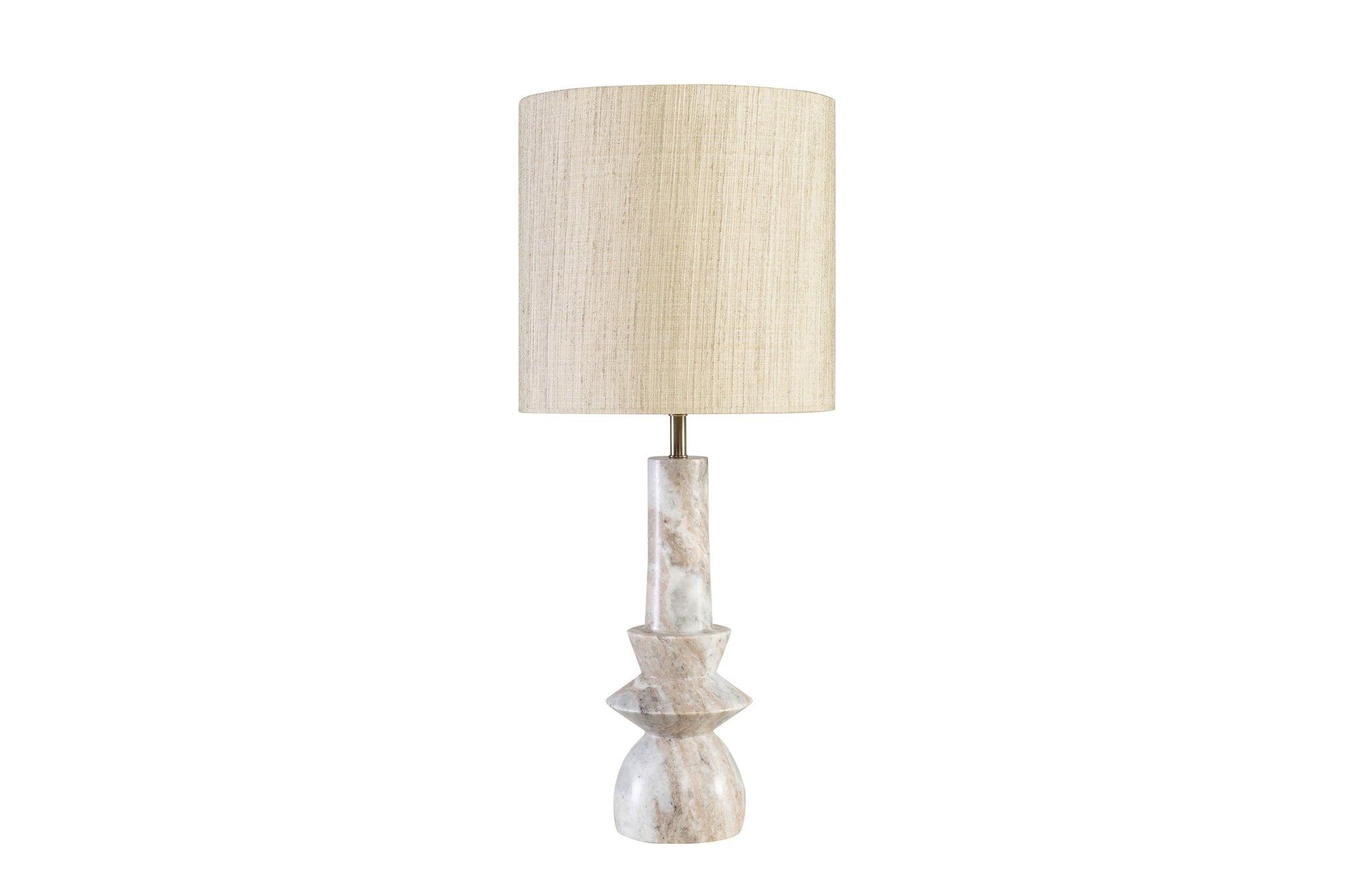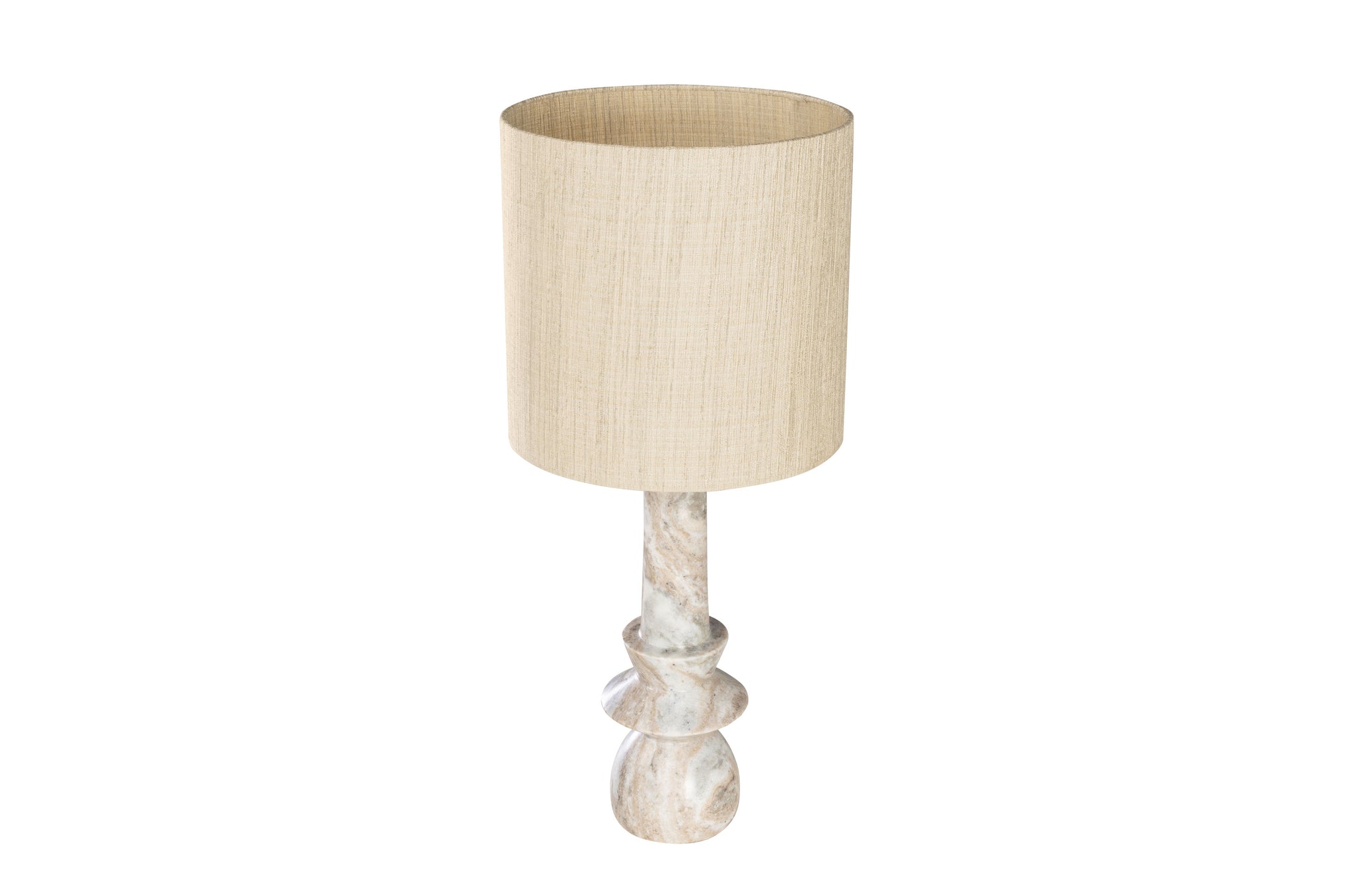 De Tafellamp Astro – Shade 64 van Versmissen combineert een sculpturale marmeren voet met een subtiele glans. De basis is vervaardigd uit Toronto marmer, waarin zachte kleurnuances en natuurlijke aders het materiaal tot leven brengen. De satijngepolijste afwerking geeft een rustige diepte, terwijl de lichtgouden kap het geheel een warme, elegante uitstraling verleent. Een tijdloze lamp die moeiteloos luxe toevoegt aan elk interieur.