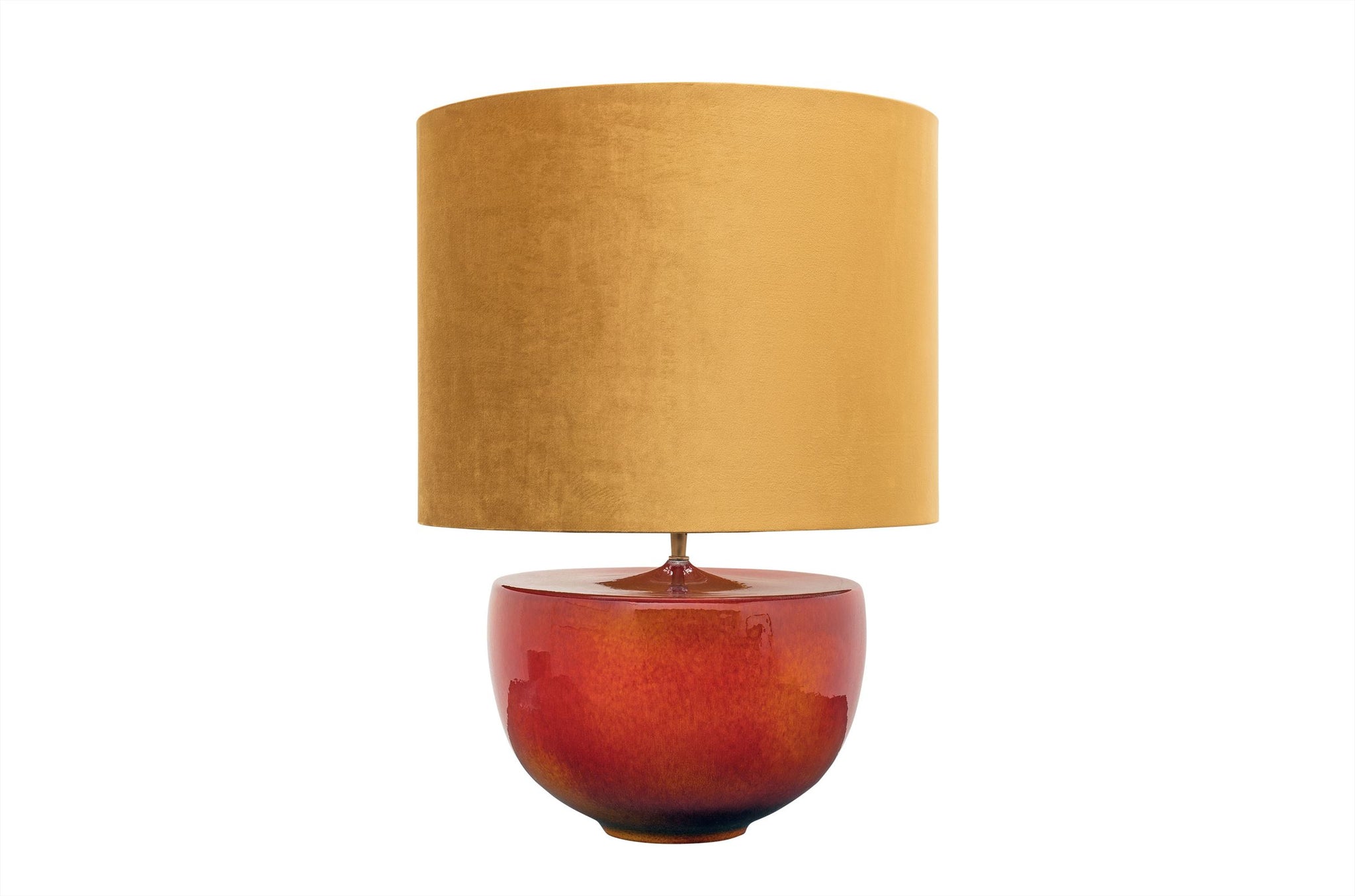 De tafellamp Otis van Versmissen is uitgevoerd in aardewerk en afgewerkt in een warme oranje tint. De voet is voorzien van een reactieve glazuur, waardoor subtiele variaties in kleur en textuur ontstaan. Geen twee exemplaren zijn daardoor exact gelijk, wat de lamp een eigen en ambachtelijk karakter geeft.