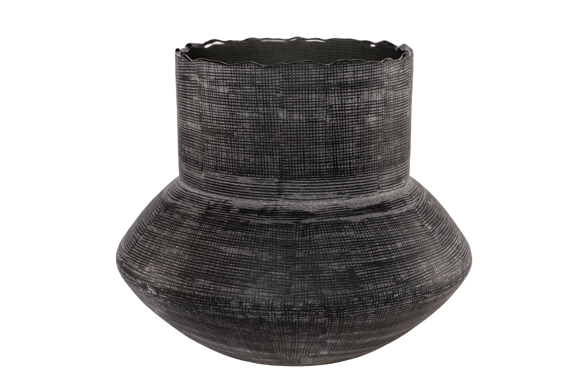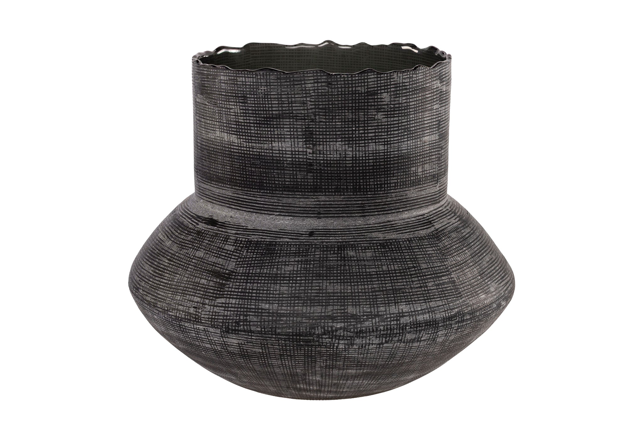 Deze donkergrijze vaas van Vermissen is mondgeblazen en met de hand afgewerkt door ervaren glasmeesters. Het glas heeft een diepe, rookachtige tint met een subtiel patroon dat de vorm extra karakter geeft. Omdat elk exemplaar handgemaakt is, kan de vaas licht variëren in kleur, gewicht en vorm, juist die nuances bepalen haar unieke uitstraling.