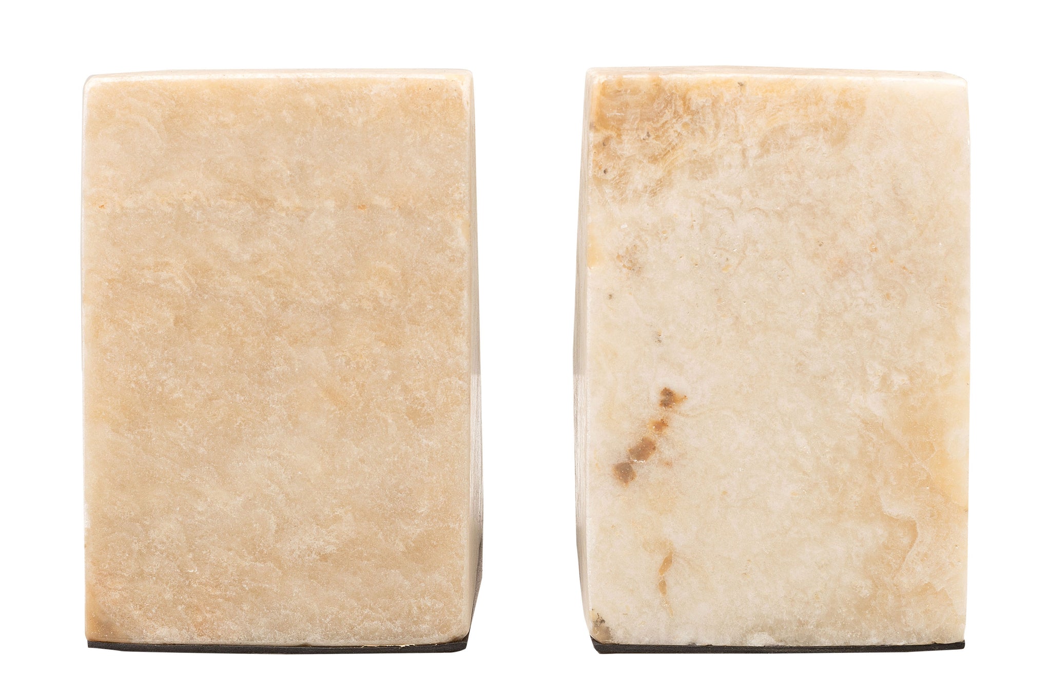 Deze set onyx boeksteunen van Vermissen bestaat uit twee massieve stukken natuursteen in zachte crème- en honingkleuren. De natuurlijke tekening en het lichte kleurverloop geven de set een rustige, heldere uitstraling, waarbij elke zijde net iets anders is.