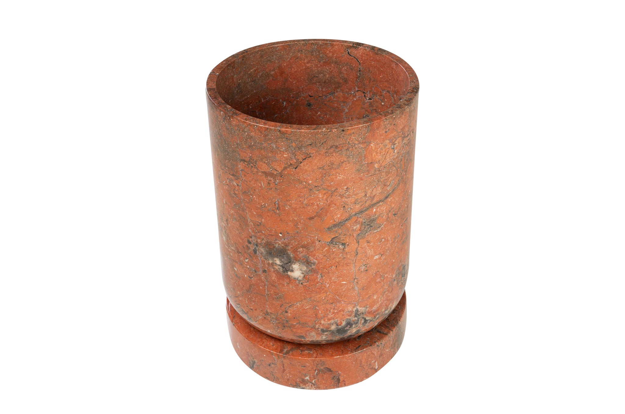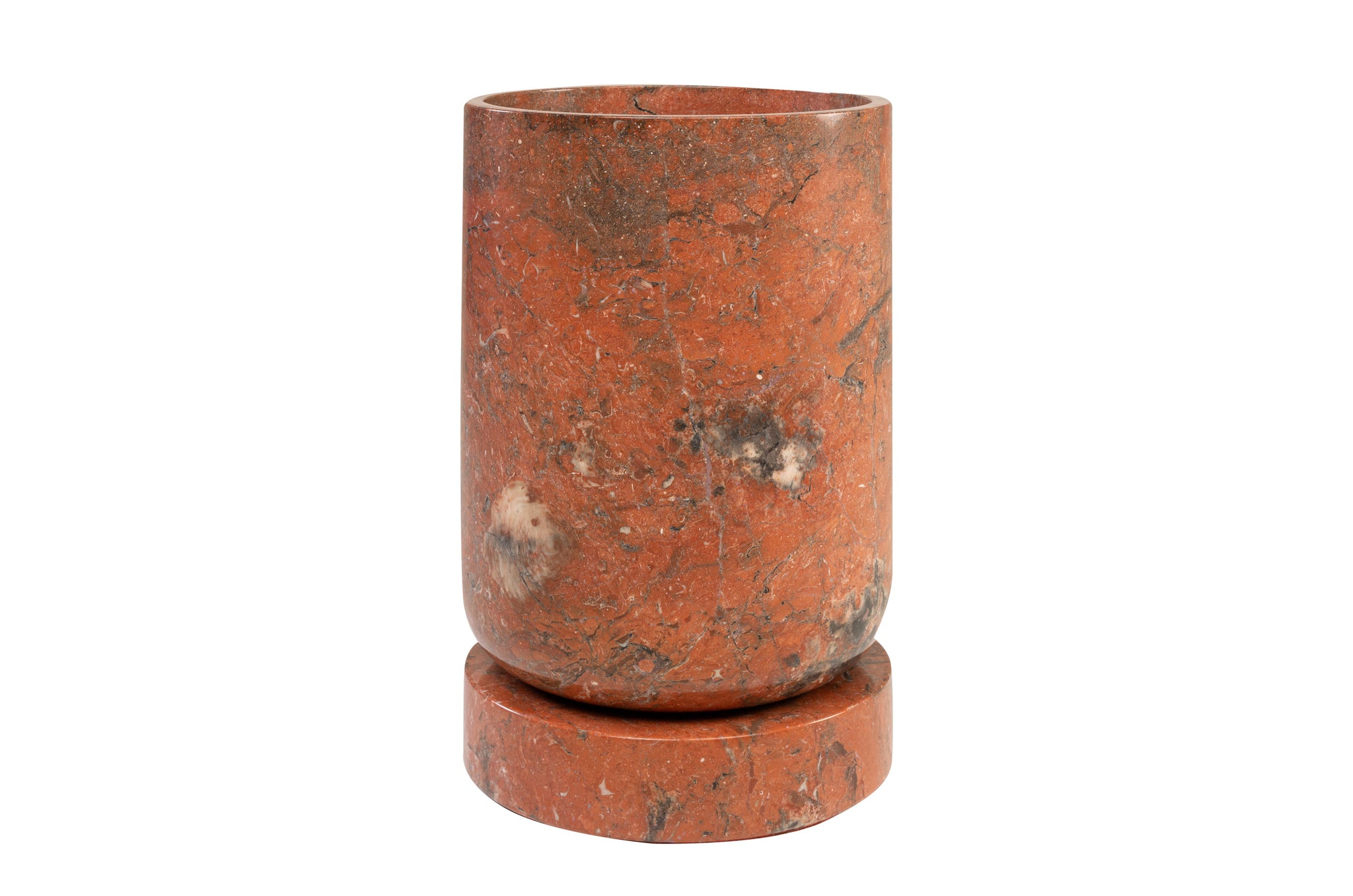 Plantenbak Caliza van Vermissen is vervaardigd uit Java Rosso marmer, een natuursteen met rijke kleurschakeringen en karaktervolle aders. Omdat het materiaal puur natuur is, kan iedere plantenbak licht variëren in tint en tekening. Eventuele natuurlijke haarscheurtjes worden zorgvuldig gevuld tijdens het afwerkingsproces; volledig normaal bij marmer en geen defect, maar juist onderdeel van de uitstraling.