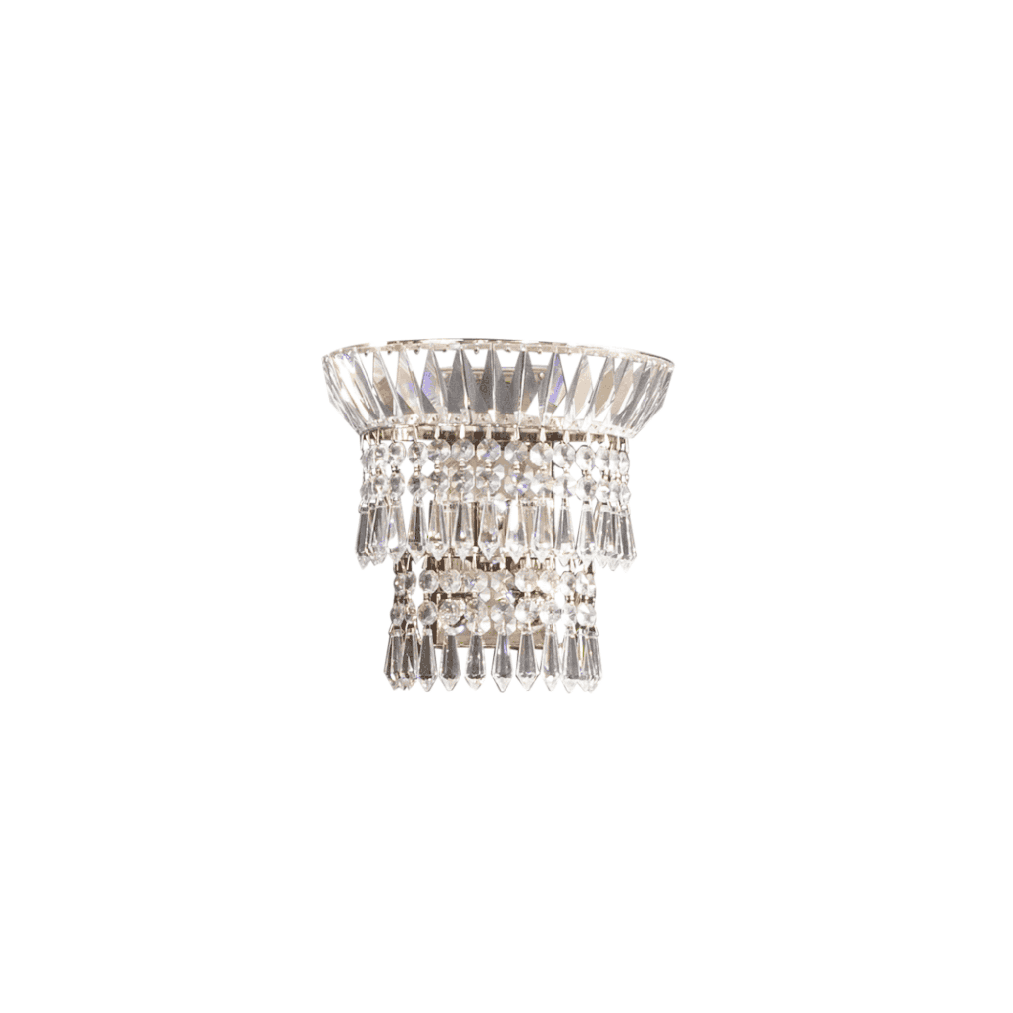 Klassieke wandlamp met geslepen kristallen die zorgen voor een sprankelend lichteffect. De gelaagde opbouw geeft een luxe uitstraling en past in diverse interieurs.